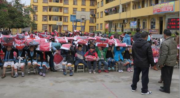 南丹縣里湖鎮(zhèn)是廣西白褲瑤聚居鄉(xiāng)鎮(zhèn),被譽為“中國白褲瑤之鄉(xiāng)”。那里的學(xué)生學(xué)習(xí)和生活條件都十分艱苦,很多孩子在嚴(yán)寒的冬天依然缺衣少襪,有的還穿著涼鞋單衣。千帆公司給南丹縣里湖鎮(zhèn)的瑤族鄉(xiāng)民族中學(xué)、中心小學(xué)和干河小學(xué)的孩子們帶來了大批的冬衣、學(xué)習(xí)設(shè)備等愛心物資。希望在寒冷的冬日,能讓山村的孩子們感受到濃濃的暖意。