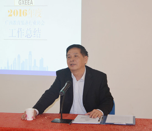 廣西教育裝備行業(yè)協(xié)會陳鐵華會長在會上做了2016年度工作總結(jié)和下一年度工作計(jì)劃報(bào)告,他表示,2016年協(xié)會基本完成各項(xiàng)工作任務(wù)目標(biāo),并對這一年來上級領(lǐng)導(dǎo)和各成員單位對協(xié)會各項(xiàng)工作的支持表示衷心感謝!隨后,陳會長簡要總結(jié)了這一年來協(xié)會完成工作情況,并介紹了各項(xiàng)工作取得的成果,特別是最近圓滿完成籌辦第71屆中國教育裝備展示會任務(wù),獲得了政府及社會各界的極大肯定,這與大家的不斷支持和努力是分不開的。對于即將到來的新一年,陳會長做了協(xié)會工作任務(wù)布署,未來一年,廣西教育裝備行業(yè)協(xié)會將進(jìn)行機(jī)構(gòu)改革,成立各個(gè)專業(yè)分會,發(fā)展推廣隊(duì)伍,讓企業(yè)全方位參與協(xié)會工作;不斷加強(qiáng)管理,形成寬松、互動、共贏的環(huán)境,建立公正、公平、嚴(yán)明的規(guī)章制度,更好的服務(wù)于企業(yè),促進(jìn)廣西教育裝備行業(yè)良好發(fā)展。最后,陳會長對南寧千年工藝股份有限公司、南寧千帆教學(xué)科技有限公司給予本次會議的大力支持表示感謝,并祝愿協(xié)會各成員單位事業(yè)興旺發(fā)展!
